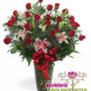 Diseño elaborado en base de vidrio con rosas blancas y follajes.