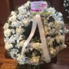 Corona elaborada en hojas, tejidas con lirios blancos o azucenas