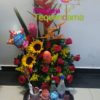 Contiene Bandeja de fruta segun disponibilidad, sándwich, jugos, leche, yogurt, pocillo mugs, queso pera, chocolates, maní, brownie, globo de acuerdo la ocasión, moño y tarjeta.